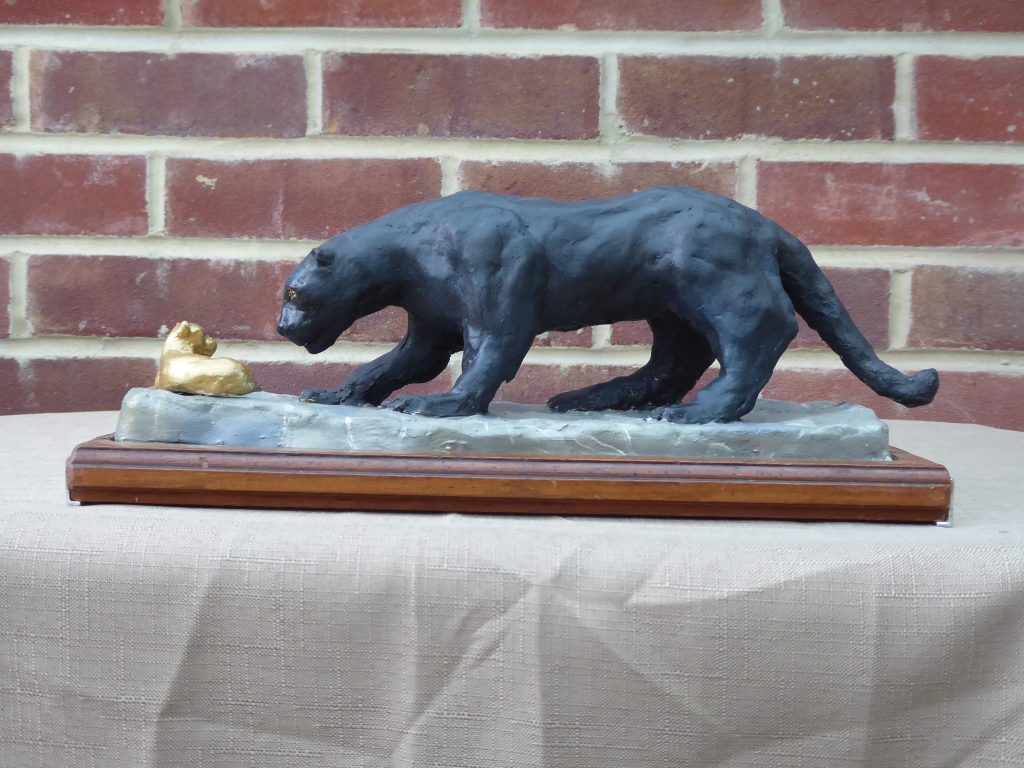 A unique version of a clay study of a tigers head cast in Jesmonite and hand painted. This looks stunning and a little spooky in low light conditions. I am a little reluctant to sell this one, but £300 is the price.